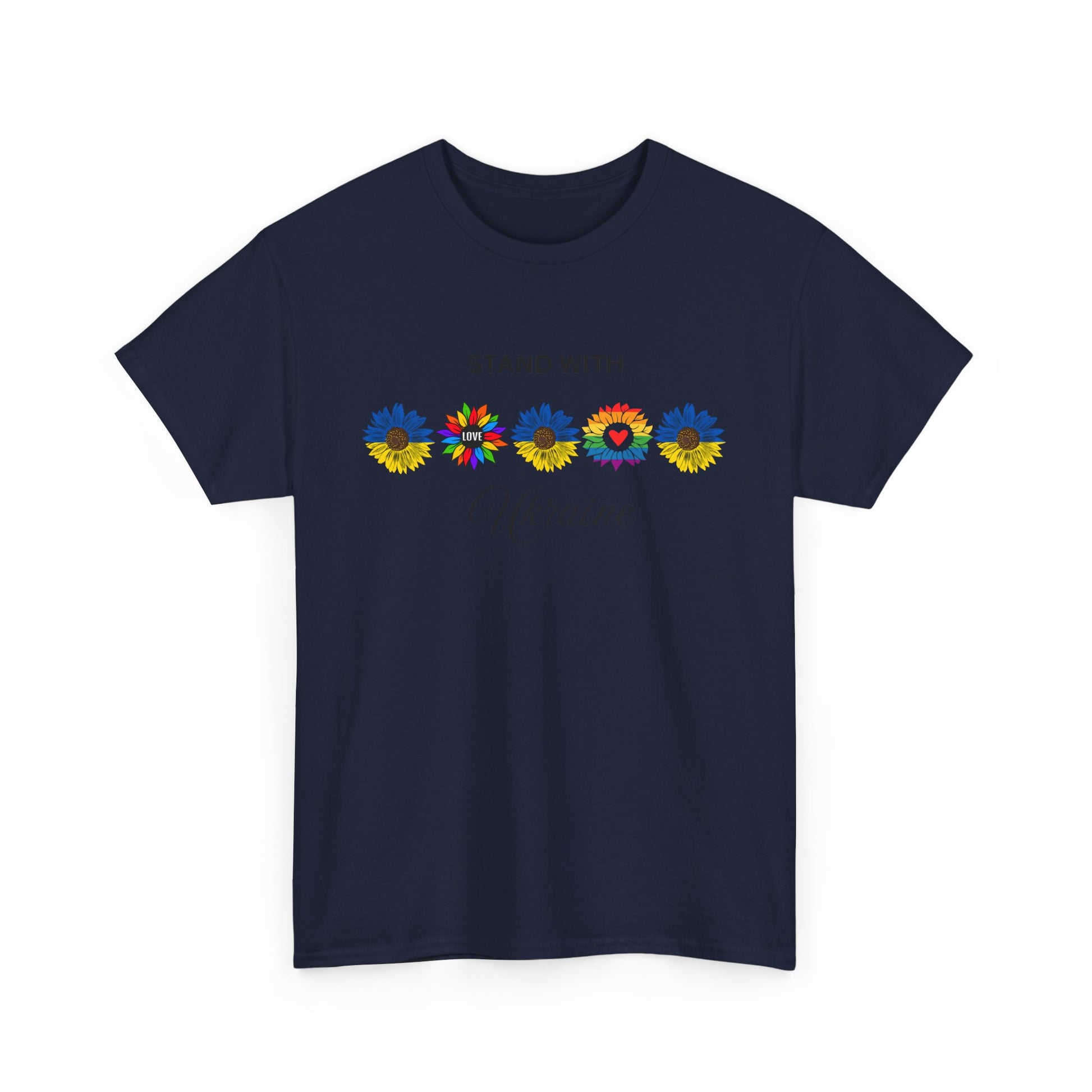 Celebrate unity and resilience with this vibrant Unisex Heavy Cotton Tee. The bold design, featuring uplifting floral patterns, radiates positivity and encourages a spirit of togetherness. Ideal for casual outings or informal gatherings, this tee brings a cheerful touch to any wardrobe. Perfect for those who stand for important causes, it resonates with activists and individuals wishing to make a statement. Great for holidays, rallies, or community events, this shirt is a heartfelt way to show support during times of need.